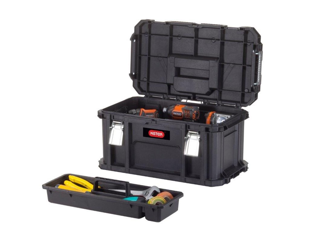 - Úložný box s odnímatelným tácem na odkládání nářadí