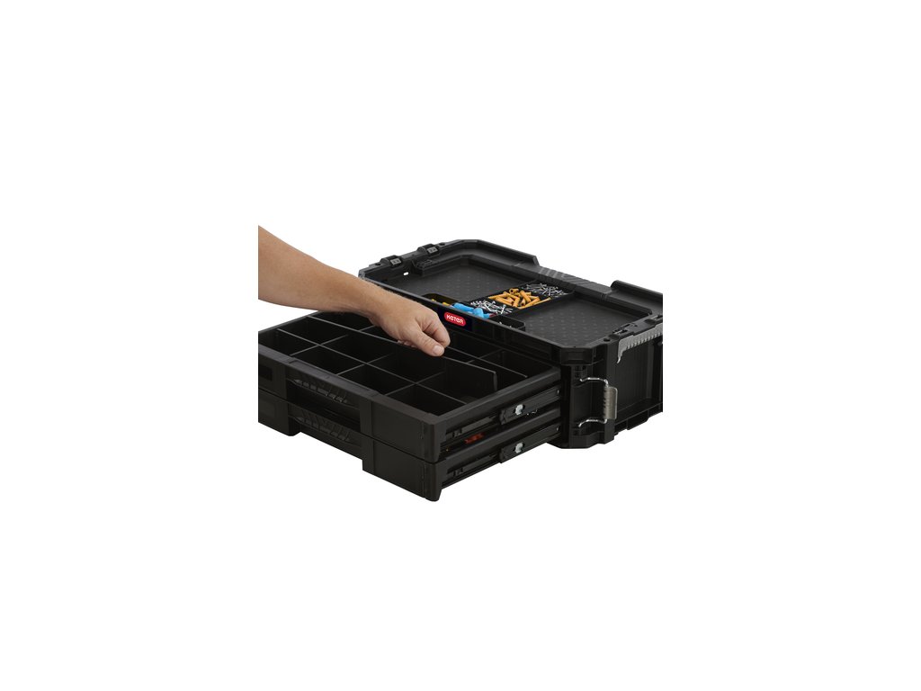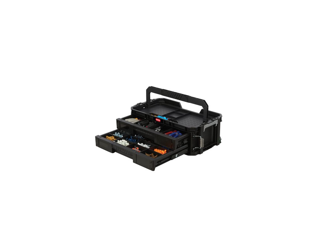 Box Connect využijete pro uskladnění pracovních pomůcek. Uschovejte v něm malé nástroje, díly a další řemeslné potřeby. Díky 2 zásuvkám je rychle najdete a máte je po ruce, kdykoliv potřebujete. Úložný prostor si přizpůsobíte pomocí vyjímatelných přepážek, kterými oddělíte šroubky od matic a jiného drobné náčiní.