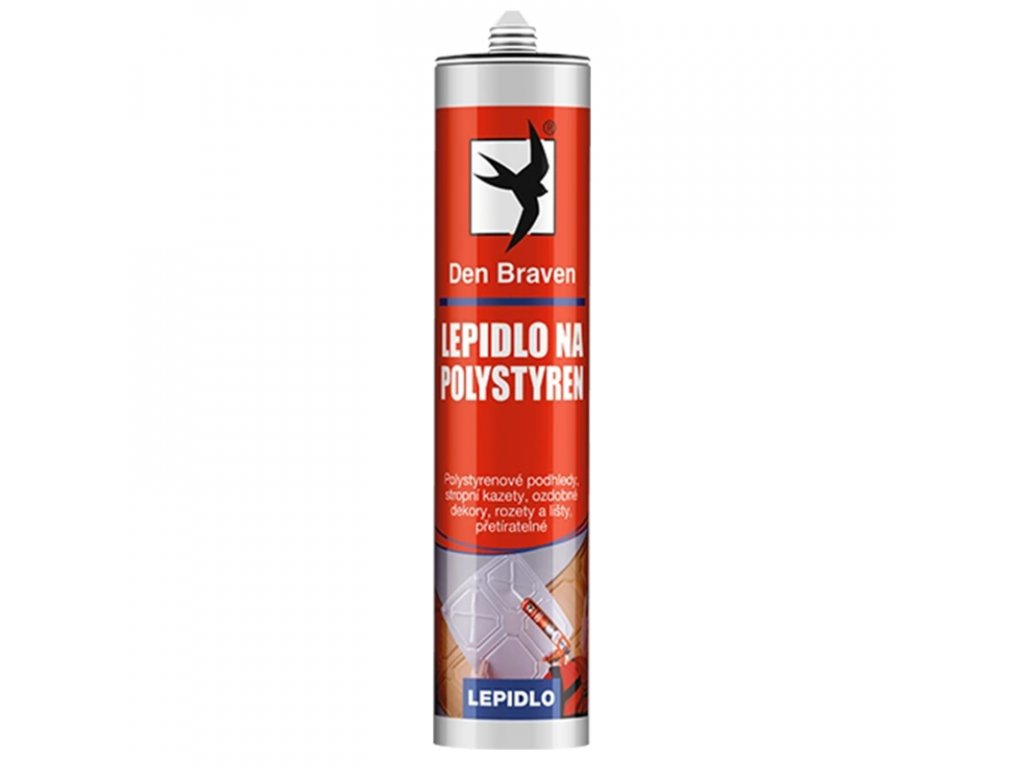 Den Braven Lepidlo na polystyren je jednosložkové lepidlo na bázi disperze, vytvrzující odpařením vody, vytváří trvalý pevný a vlhkotěsný spoj. Je určeno k lepení polystyrenových dekorativních podhledů na savé povrchy, lepení polystyrenových rohových a ukončovacích lišt, vč. ozdobných ukončovacích profilů. Vhodný k použití na savé povrchy jako jsou omítky, pórobeton, beton, dřevo apod., kdy minimálně jeden z lepených povrchů musí být savý. Lepidlo je dostupné ve více velikostech.