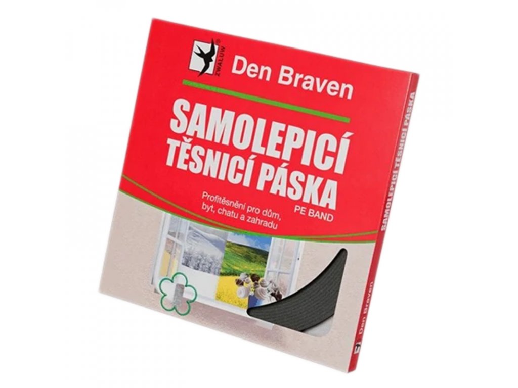 Den Braven Samolepicí těsnicí páska do oken a dveří je páska vyrobena z měkkého polyetylénu s jednostranným nánosem vysoce lepivého filmu. Odolává vlhku, vodě, prachu a stárnutí. Její tepelná odolnost po aplikaci je od - 40 °C až do 50 °C. Aplikovat pásku je možné v teplotním rozsahu od 2 °C až do 30 °C.