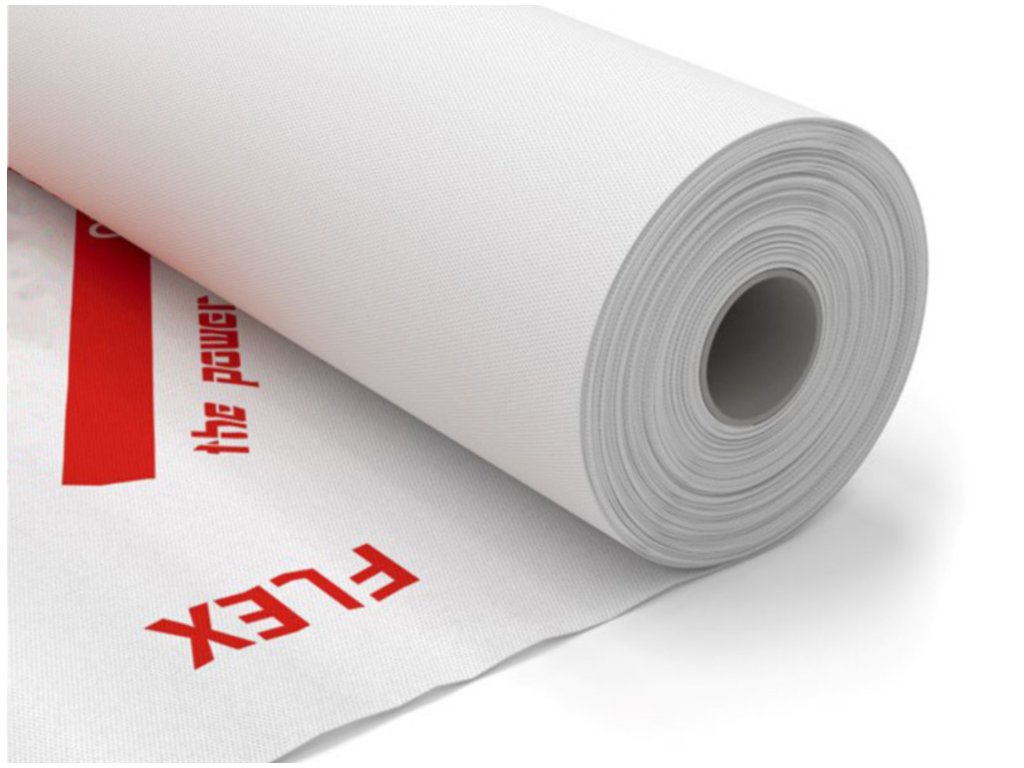 Difúzní podstřešní fólie Flex 100 je třívrstvá střešní fólie s vysokou paropropustností, která se skládá ze dvou vnějších vrstev polypropylenové textilie a vnitřní funkční vrstvy z difuzního filmu. Je vhodná k pokládce pod střešní krytinu, instalaci přímo na tepelnou izolaci i difuzní bednění. Nabízí výjimečně nízký difuzní odpor (Sd 0,02) a je použitelná už od sklonu 17° dle typu krytiny, pro třídyh těsnosti DHV 6, 5, 4 a 3. Uplatnění nachází také jako větrozábrana v provětrávaných fasádních systémech bez otevřených spár.