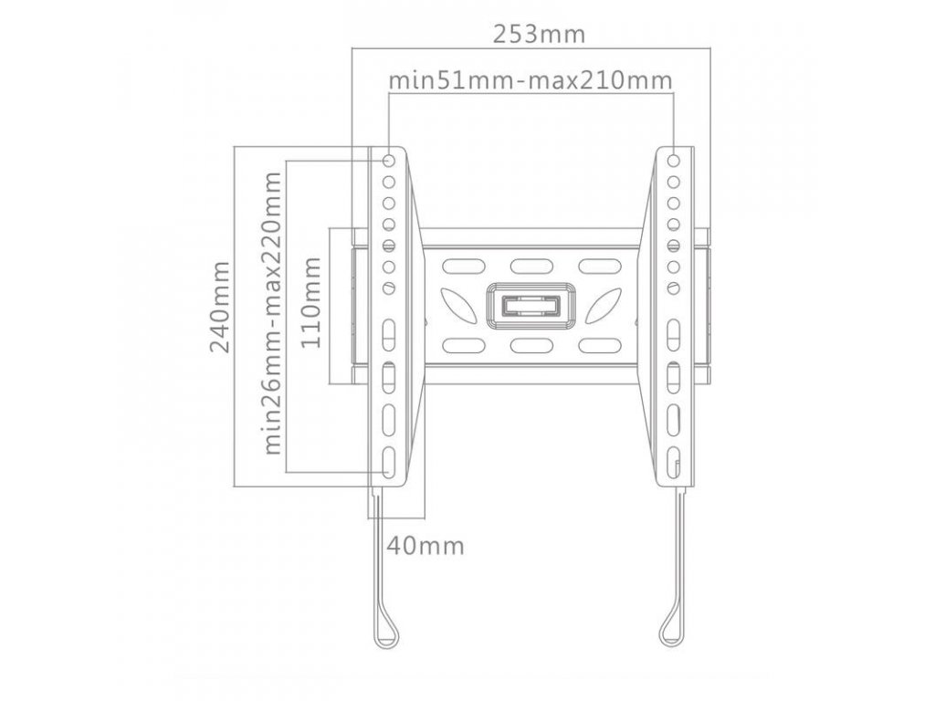 Držák může být použitý i pro televize jiných úhlopříček, než které udává výrobce, musí být však dodržen rozměr VESA, a nosnost držáku vs. hmotnost televize bez podstavce.