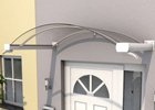 Vchodová stříška Herald z hliníkové práškově lakované konstrukce s pozinkovanými podpěrami, integrovaným okapem a UV odolné dvoukomůrkové polykarbonátové desky o tloušťce 6 mm.