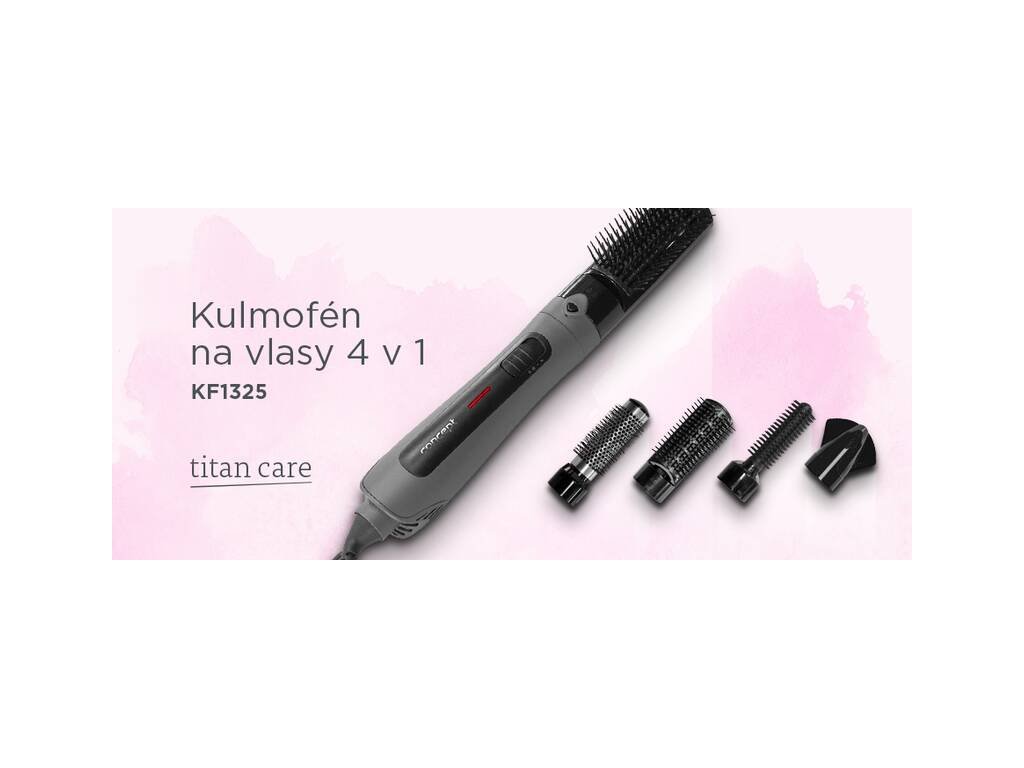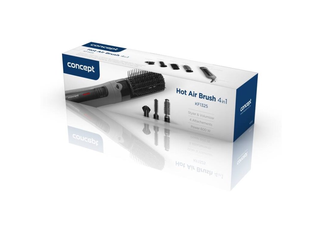 V balení kulmofénu Concept KF1325 naleznete 4 vyměnitelné nástavce, které vám pomohou vytvořit bohatý objem, neodolatelné lokny či narovnané vlasy. Pomocí CLICK-IN systému si velmi jednoduše a rychle vyměníte nástavec přesně podle toho, jaký budete potřebovat. Nástavec připevníte a můžete se pustit do vytváření účesů. K dispozici budete mít 3 druhy kartáčů a koncentrátor, který usměrní proud vzduchu do určeného místa.