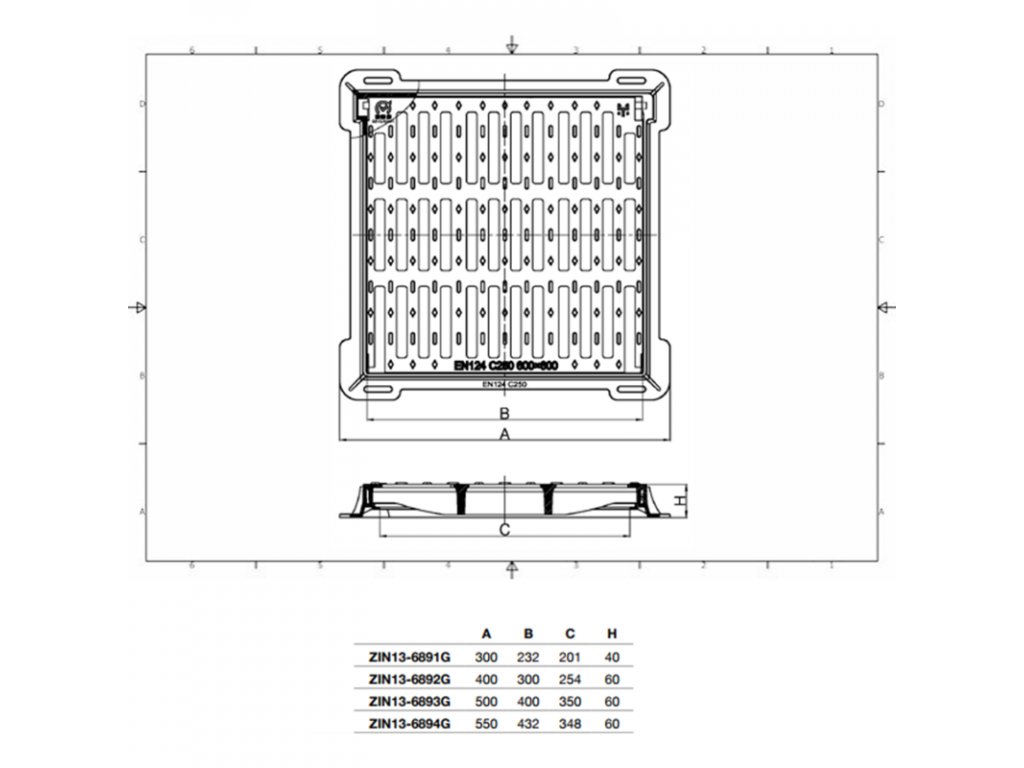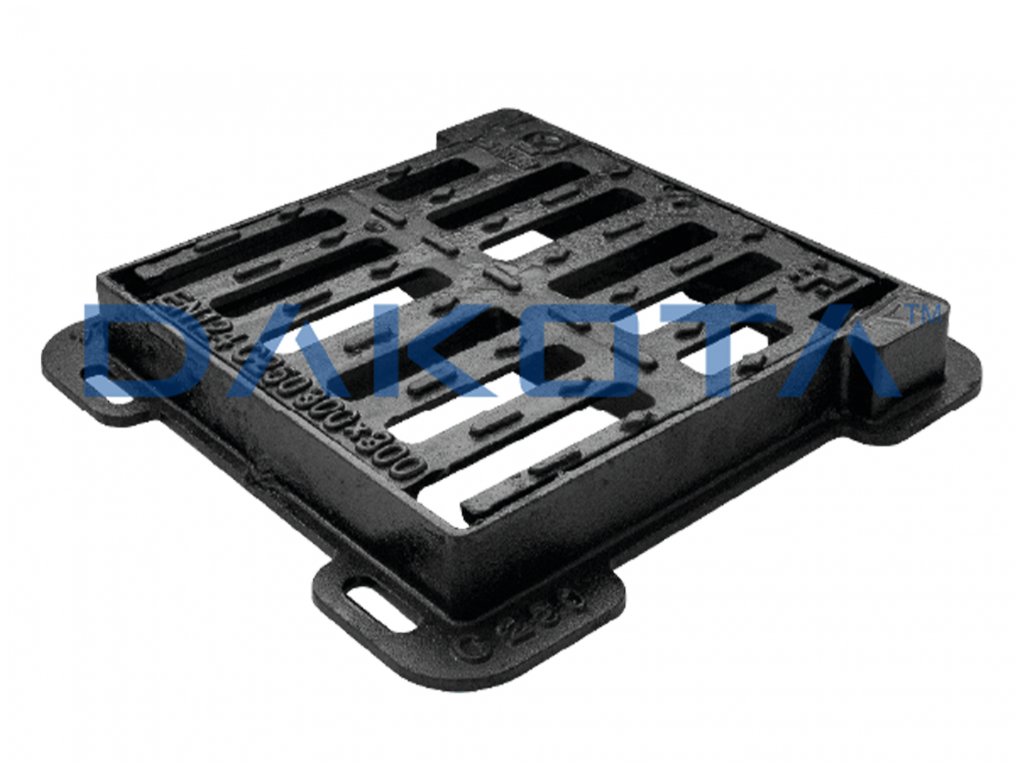 Dakota Litinový rošt s rámem je vyroben z litiny v základním dehtově černém provedení. Tento poklop je určený pro zakrytí revizních šachet, servisních otvorů atd. Precizní provedení a kvalitní povrchová úprava zajišťuje dlouhou životnost roštu a schopnost zatížení C250, které odpovídá 25 tunám. Rošt je dodáván včetně rámu určeného pro okamžité zabetonování a rozměry jsou udávané včetně rámu.