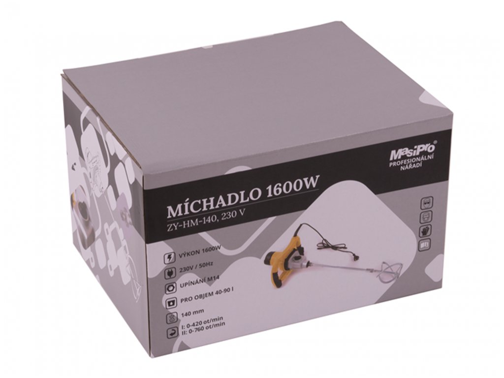 Míchadlo MasiPro ZY-HM-140 s výkonem 1600 W je unikátní pomocník, který si snadno poradí se všemi druhy materiálů jakou jsou například suché malty, sádrové směsi či lepidla na obklady. Míchadlo má velké ergonomické madlo s dobrou dosažitelností ovládacích prvků. Velká upínací matice M14 je součástí balení a je velice důležitá pro účinný přenos sil a rovněž umožňuje snadnou výměnu nástroje. Součástí balení jsou také dvě kvalitní spirálové míchací metly o průměru 140 mm.