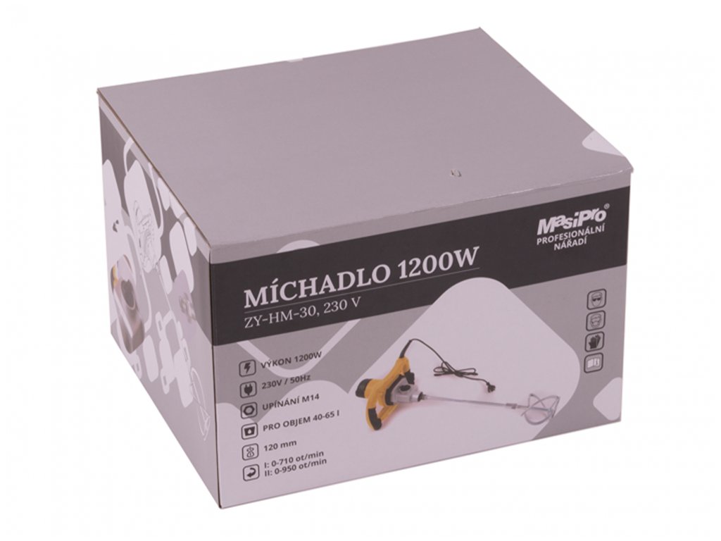 Míchadlo MasiPro ZY-HM-30 s výkonem 1200 W je unikátní pomocník, který si snadno poradí se všemi druhy materiálů jakou jsou například suché malty, sádrové směsi či lepidla na obklady. Míchadlo má velké ergonomické madlo s dobrou dosažitelností ovládacích prvků. Velká upínací matice M14 je součástí balení a je velice důležitá pro účinný přenos sil a rovněž umožňuje snadnou výměnu nástroje. Součástí balení jsou také dvě kvalitní spirálové míchací metly o průměru 120 mm.