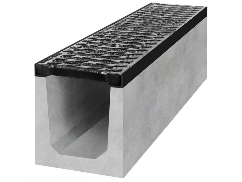 Spádový betonový žlab B125 s litinovou mříží jevyroben z betonu třídy C35/45, určen pro odvod vody a je kompatibilní sespádovou betonovou vpustí B125. Jeho materiál zajišťuje odolnost proti působení atmosférických činidel a disponuje vysokou mechanickou odolností. Součástí žlabu je odtoková mřížka vyrobena z litiny, jejíž rošty jsou vysoce odolné proti nepříznivým klimatickým podmínkám. Celý betonový žlab disponuje únosností 12,5 tuny a je ideální k odvodnění zpevněných ploch u rodinných domů, vjezdů do garáží, vjezdů na parkoviště pro osobní i nákladní vozidla, podnikových nádvoří, výrobních hal atd. Jeho dokonale hladký povrch zajišťuje výborné odtokové parametry. Odvodňovací žlaby majíintegrované spádované dnoa mohou tvořit linii od 2 do 15 metrů.