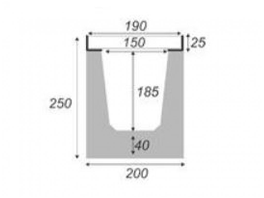 Betonová vpusť B125 ke spádovému žlabu je vyrobena z betonu třídy C35/45, určena pro jímání vody v exteriéru a je kompatibilní se spádovým žlabem B125. Její materiál zajišťuje odolnost proti působení atmosférických činidel.