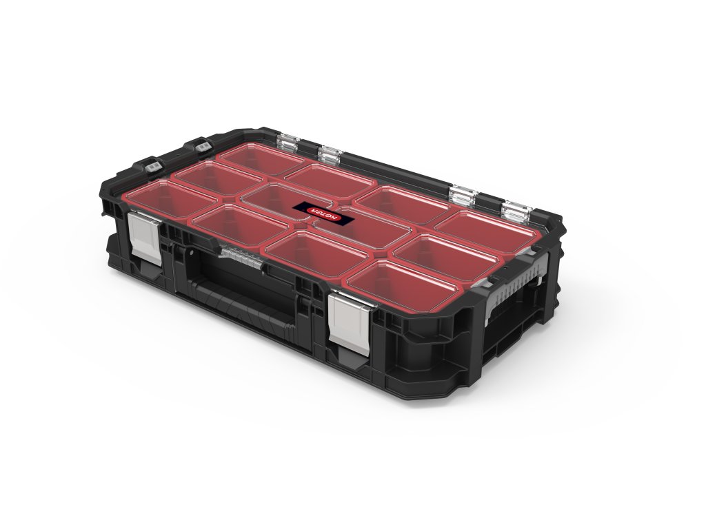 Udělejte si pořádek v dílně nebo garáži. Organizér Connect využijete pro uskladnění drobného spojovacího materiálu nebo součástek. Do 12 přihrádek si roztřídíte veškerý materiál a díky průhlednému plastovému víku o něm vždy budete mít přehled.