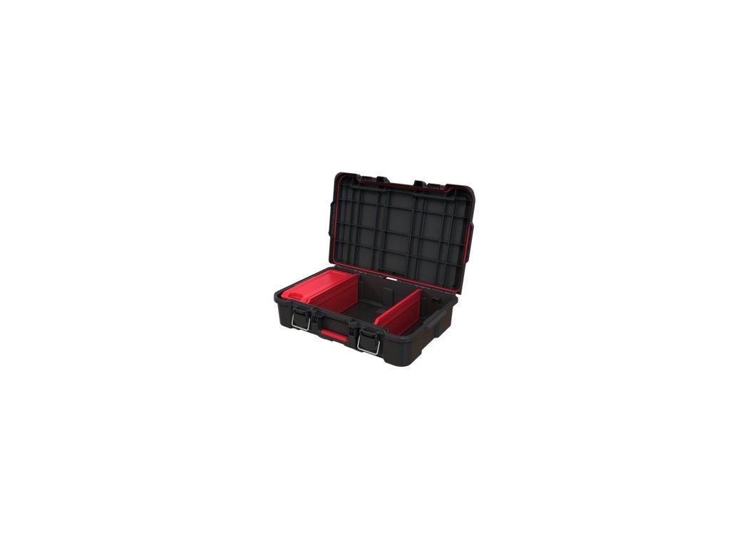 Kovové západky zajistí pevné uzavření víka. Obsah organizéru se vám tedy nevysype a zůstane v bezpečí. V případě, že chcete mít přístup k nářadí jen vy, uzamkněte ho klasickým visacím zámkem. Ten si ovšem musíte dokoupit zvlášť. Madlo s gumou a postranní úchyty vám navíc zjednoduší přenášení organizéru.