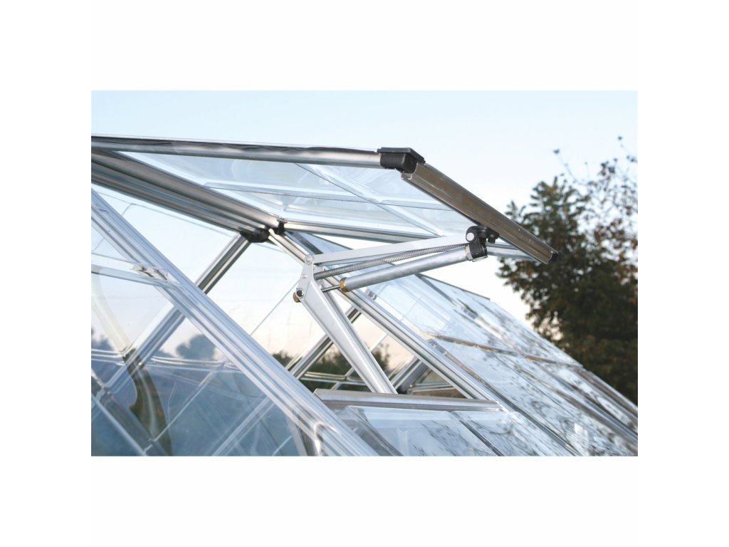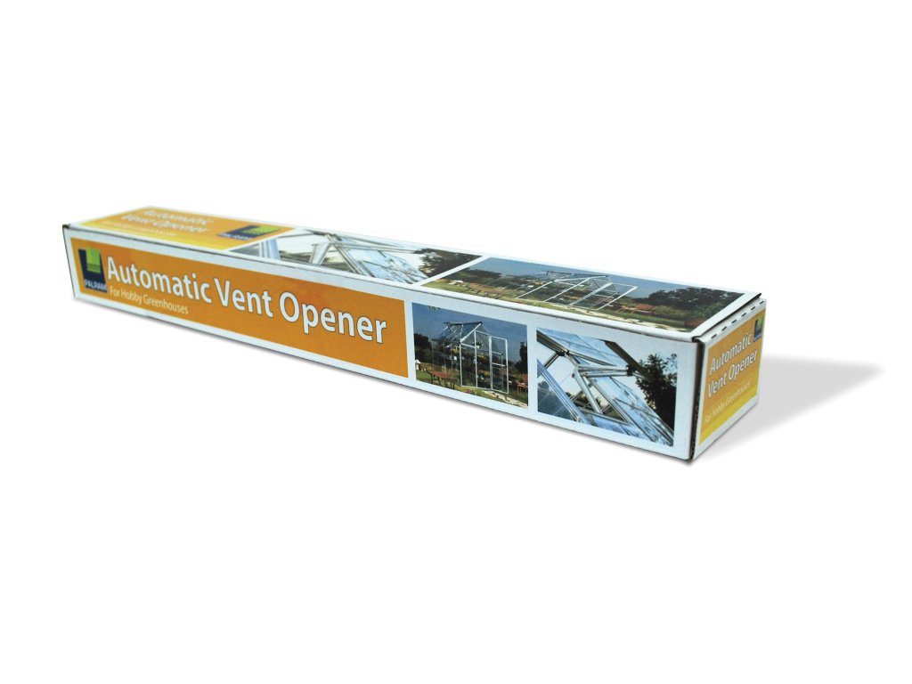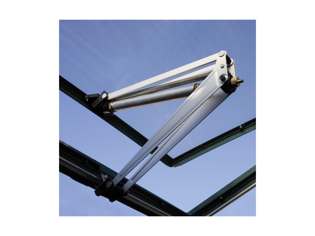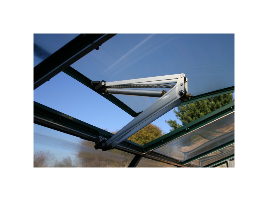 Automatický otvírač střešního okna Palram. Otvírač hlídá teplotu ve skleníku za vás a chrání rostliny před přehřátím nebo chladem. Systém začíná automaticky otevírat střešní okno při teplotách kolem 12-15°C. Plného otevření se potom docílí při teplotách okolo 30°C. Při ochlazení systém okno automaticky uzavře.