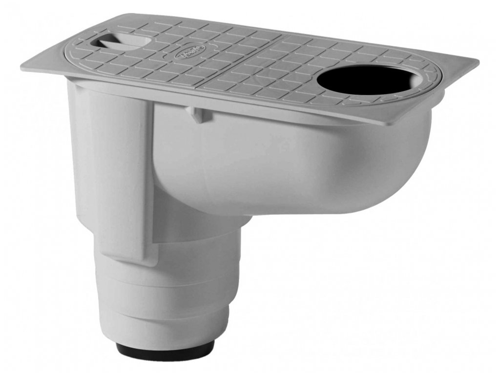 Geiger s vertikálním odtokem - suchý představuje integrované zařízení pro sběr a odvod vody z okapového systému, které je vyrobeno z polypropylenu, kvalitního materiálu ve 2 různých barvách. Praktickou vlastností je schopnost odvádět vodu bez její akumulace, což vede k řešení potenciálních problémů se zamrzáním v zimních měsících. Výhodou je snadná montáž, estetický vzhled, zpětná klapka pro prevenci zpětného toku vody, zároveň i pro eliminaci úniku zápachu z kanalizace. Součástí je koš pro zachycení nečistot, které by mohly vniknout do kanalizace a způsobit tak ucpání. Dále obsahuje vstupní víko pro připojení k okapovému systému o průměru 80, 90, 100, 110 a 125 mm, poklop pro snadnou revizi i čištění a vertikální vývod pro kanalizační potrubí o průměru 80, 100 a 110 mm.