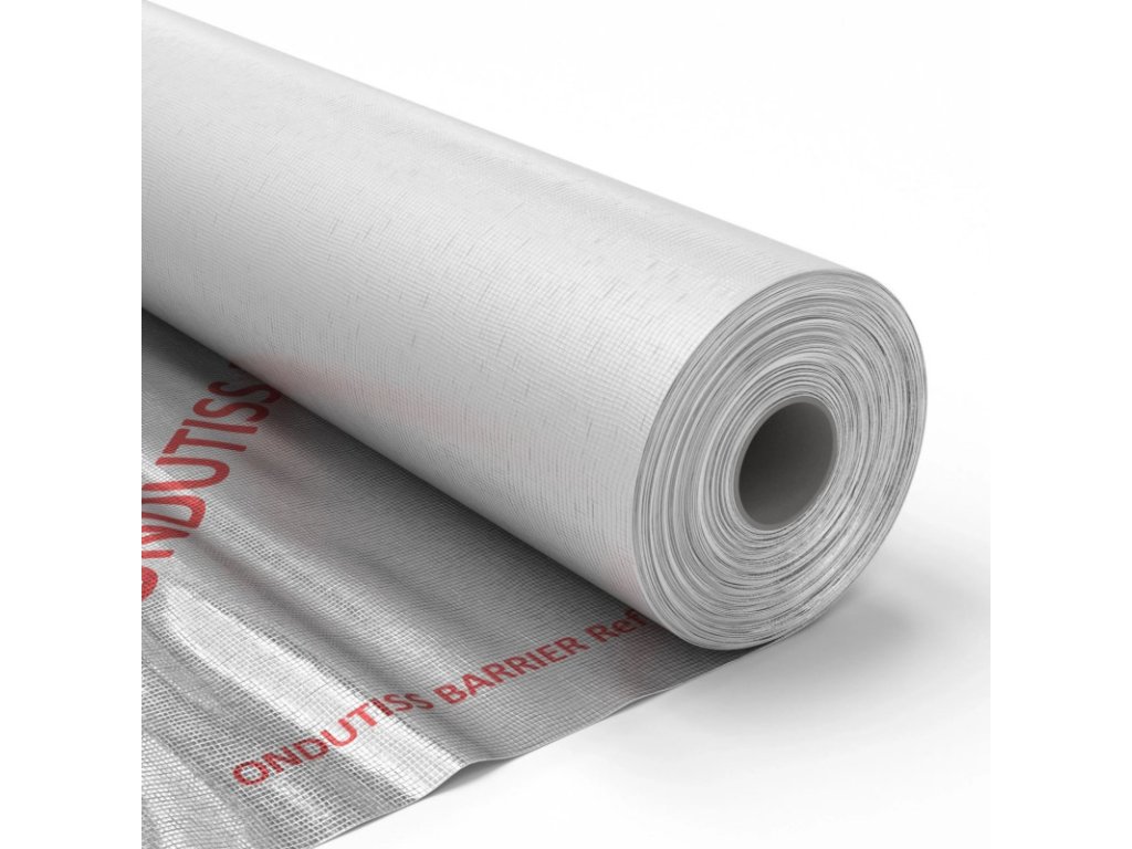 Ondutiss BARRIER REFLEX je třívrstvá parozábrana z vyztuženého polyetylenu poskytující efektivní a dlouhodobou ochranu proti vlhkosti v dřevěných konstrukcích střech, stropů a stěn. Disponuje reflexní hliníkovou vrstvou, která se podílí na odrazu tepelného záření zpět do interiéru. Fólie brání pronikání vlhkosti do tepelné izolace, spolehlivě zabraňuje kondenzaci vodních par a účinně chrání střechu před tvorbou plísní a hub. Vyniká vysokou mechanickou odolností, dlouhodobou životností a nízkou hmotností díky vícevrstvé konstrukci. Výhodou je snadná a rychlá instalace, přičemž se fólie umisťuje přímo na vnitřní stranu střešní konstrukce, mezi tepelnou izolaci a např. sádrokartonovou deskou.