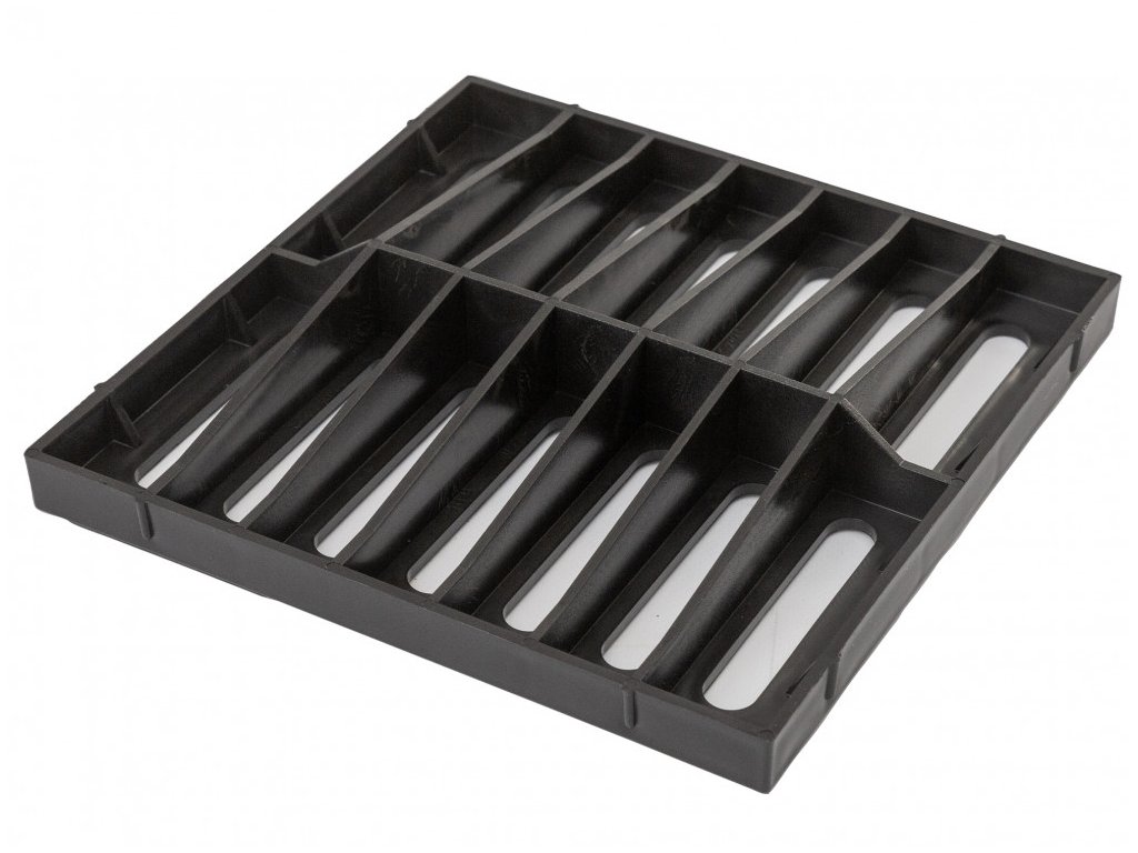 Rošt s rámem je vyroben z litiny v základním černém provedení. Tento poklop je určený pro zakrytí revizních šachet, servisních otvorů apod. Precizní provedení a kvalitní povrchová úprava zajišťuje dlouhou životnost roštu.