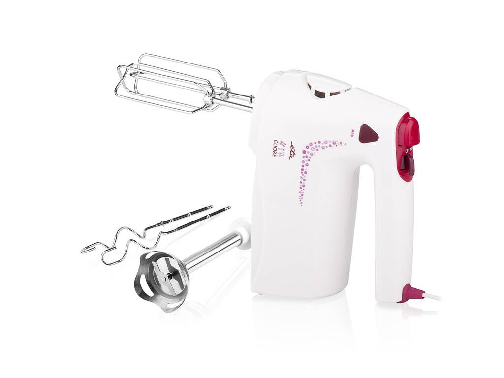 ETA Cuore představuje výkonného a komfortního pomocníka pro přípravu pokrmů. Elektrický ruční šlehač nabízí 2 extra dlouhé šlehací metly, 2 unikátní hnětací háky a tyčový mixér v kvalitním nerezovém provedení. Využít můžete 4 rychlostní stupně a tlačítko TURBO.