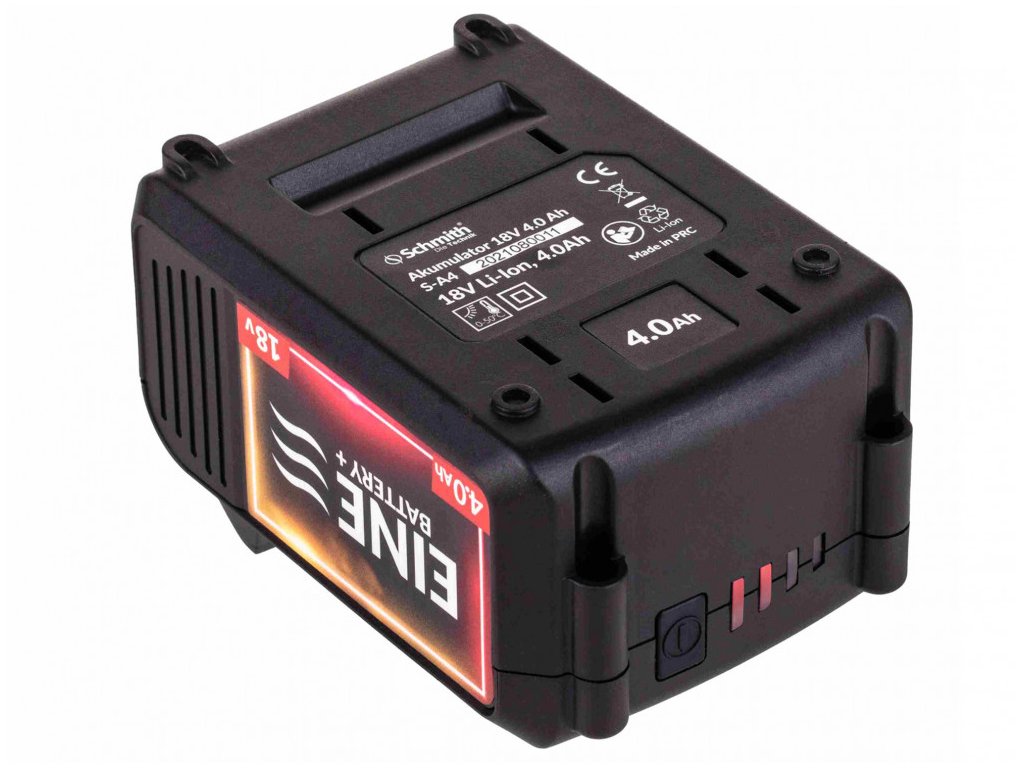 Schmith Akumulátor 4,0Ah 18V představuje kvalitně zpracovaný lithium-iontový akumulátor, který je kompatibilní s veškerým AKU nářadím Schmith a je tak jejich nezbytným doplňkem. Pro jeho nabíjení je vhodná Rychlonabíječka S-SL24, která ho nabije za 70 - 100 minut a poskytuje tak rychlé a stabilní nabíjení.