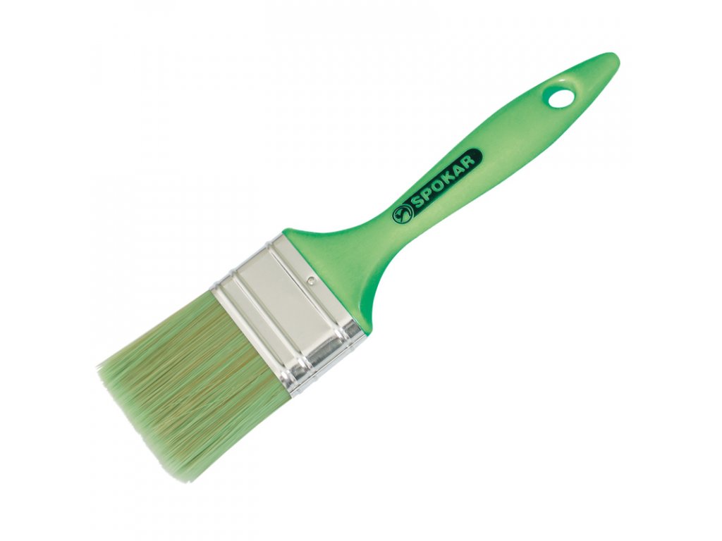 SPOKAR Štětec plochý 81330 LAZUR je štětec určený pro natírání lazurovacích nátěrů dřeva. Štětec je dodáván v různých šířkách a disponuje směsí štěpených syntetických vláken (PES) a přírodních štětin. Vlákna mají zašpičatělé konce zajišťující kvalitní roztěr barvy do rovnoměrné vrstvy. Štětec dále disponuje plastovým držadlem.