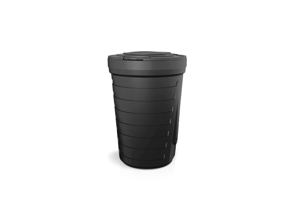 Sud na vodu Woodcan (bez podstavce) je vyroben z polypropylenu. Sud o rozměrech (průměr/ výška) 648 x 1128 mm a objemu 265 l. Barevné provedení sudu je černošedé.