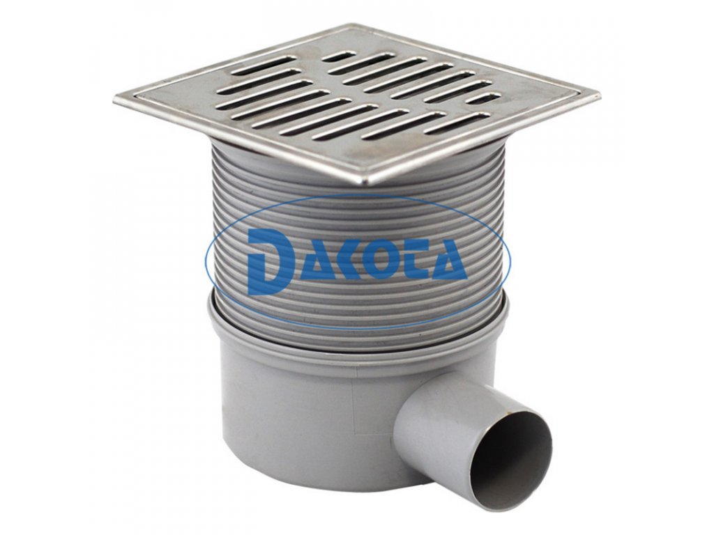 Teleskopická podlahová vpusť s bočním odtokem a nerezovou mřížkou