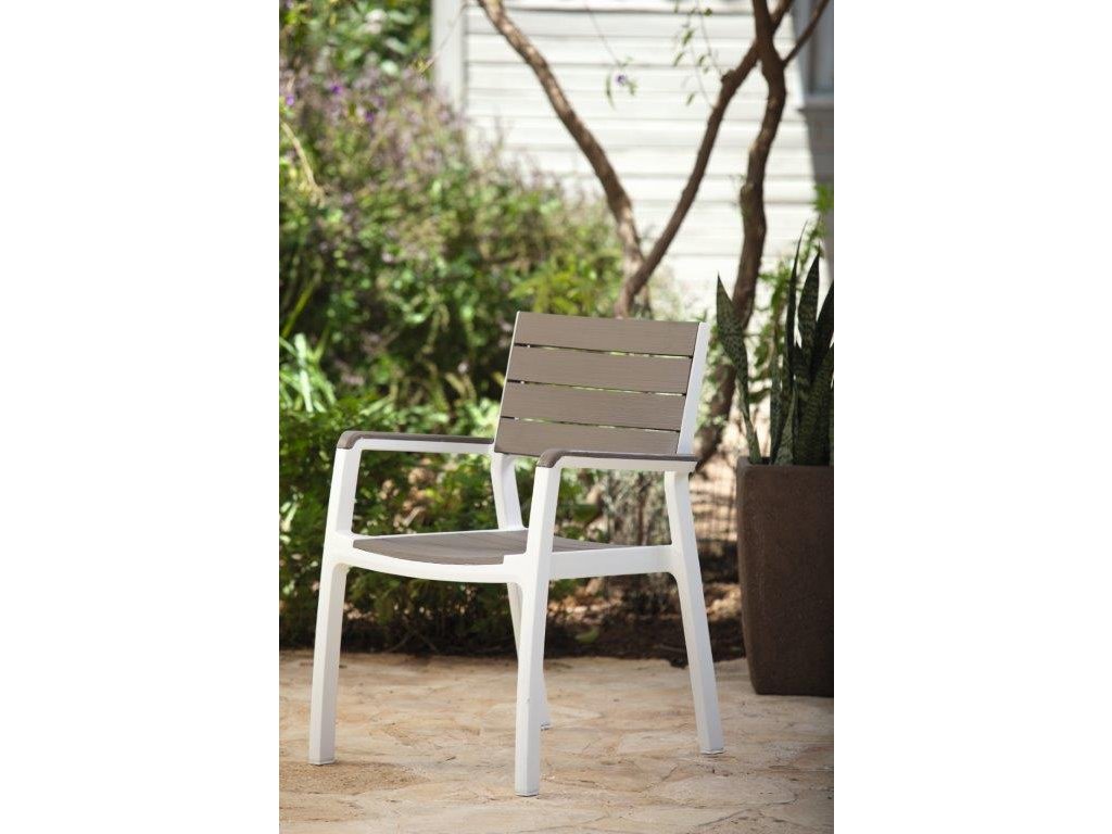 Zahradní židle Harmony vás nadchne svým subtilním vzhledem a stylovým designem z umělé pryskyřice, která imituje strukturu přírodního dřeva. Navíc tento materiál propůjčuje židli extrémní odolnost vůči povětrnostním vlivům a UV záření, takže spolehlivě vydrží běžné zatížení při venkovním provozu. Cappuccinovo-bílou nebo bílo-světle šedou židli s područkami si prostě zamilujete. Perfektně ji doplní stůl Harmony ze stejné kolekce, ke kterému se vejde až 6 těchto židlí. Zejména však oceníte její stohovatelný design, který vám maximálně ušetří prostor i čas. Velkou výhodou je, že se obejdete bez jakéhokoliv speciálního náčiní, jelikož se tato židle dodává již složená.