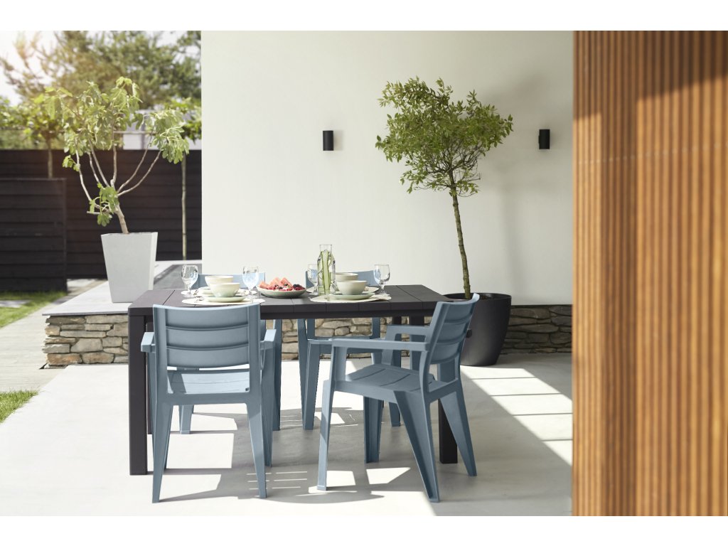 Židle Julie ke stolu stejné řady. Odolná vůči opotřebení, UV záření i počasí, stálobarevná a ideální pro venkovní použití.