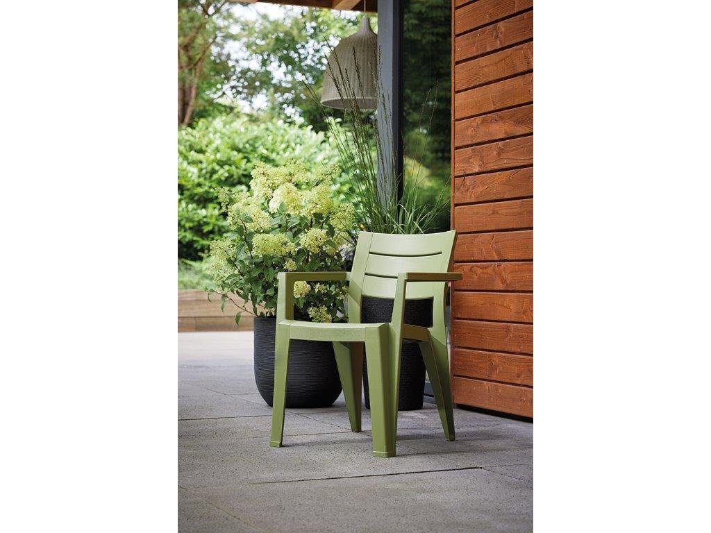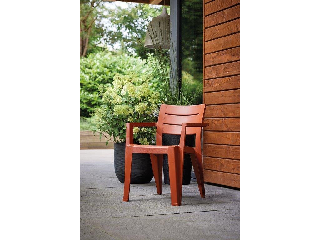 Očekáváte početnou návštěvu, ale nemáte ji kam posadit? Potřebujete venkovní židle pro vaši restauraci, kavárnu či bistro? Pak vám skvěle poslouží zahradní židle Julie s moderním designem, který se hodí k různým druhům stolů. Na židli oceníte zejména její stohovatelnost. Díky tomu ušetříte prostor při skladování více křesel najednou. Zároveň vám tato židle s opěradlem a područkami poskytne komfort při venkovním posezení.