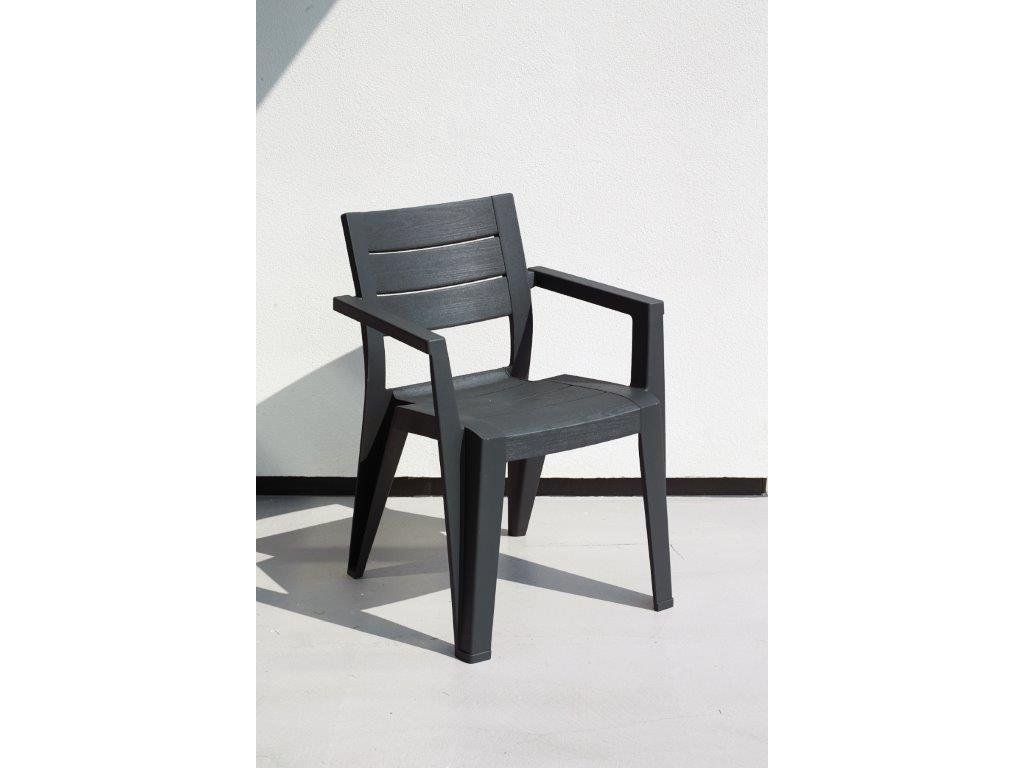 Očekáváte početnou návštěvu, ale nemáte ji kam posadit? Potřebujete venkovní židle pro vaši restauraci, kavárnu či bistro? Pak vám skvěle poslouží zahradní židle Julie s moderním designem, který se hodí k různým druhům stolů. Na židli oceníte zejména její stohovatelnost, která vám maximálně ušetří prostor i čas. Zároveň vám tato židle s opěradlem a područkami poskytne maximální luxus a komfort při venkovním posezení.