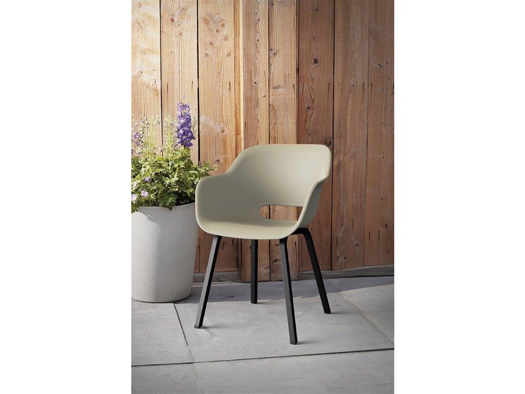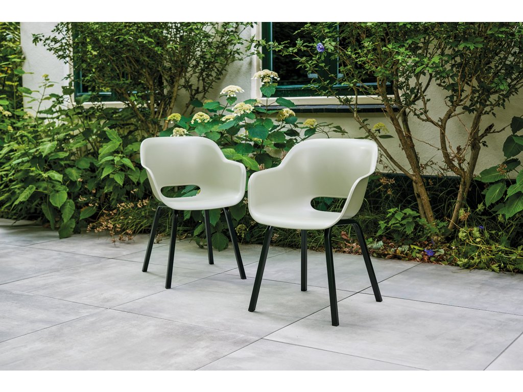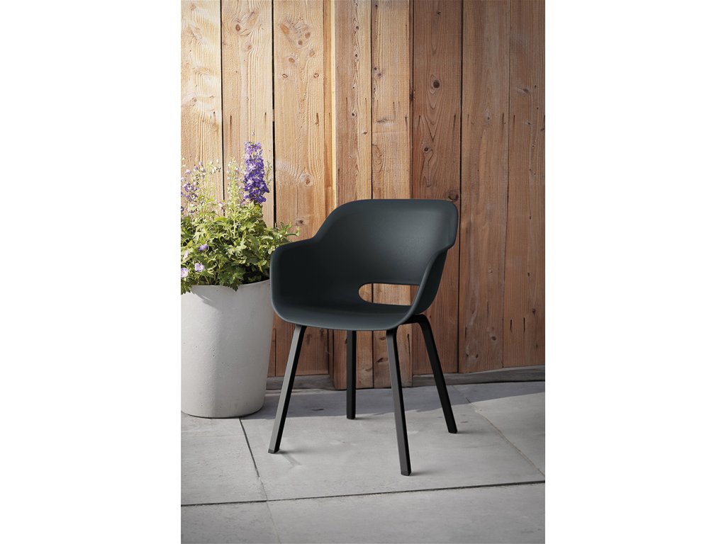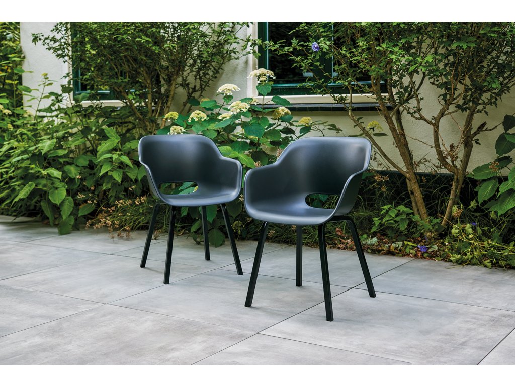 Zaoblené hrany a ergonomické provedení nejen vytváří elegantní design židle, ale zároveň vám zajistí pohodlí. Kovové nohy poskytují stabilitu. Navíc ji můžete nechat venku. Odolá totiž povětrnostním vlivům. Montáž židle je jednoduchá.