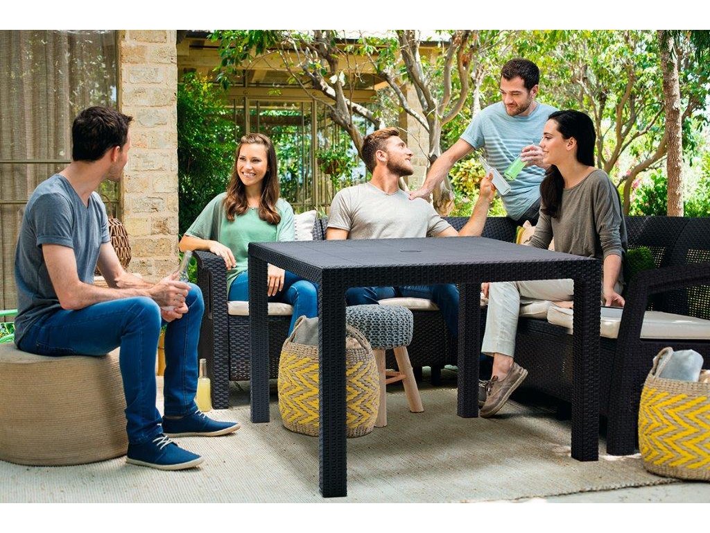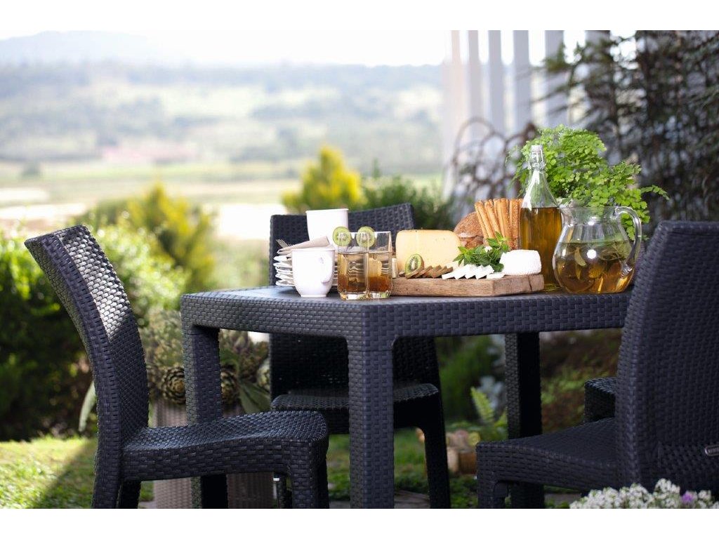 Melody Quartet je praktický a elegantní stůl s imitací přírodního ratanu. Hodí se na menší terasy nebo balkony, stejně tak ho můžete využít i ve vnitřních prostorech. Je vyroben z kvalitních materiálů odolných vůči nepřízni počasí i UV záření.