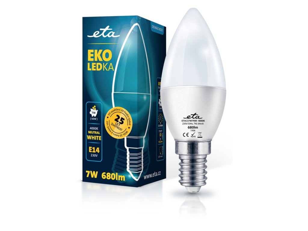 Žárovka LED ETA EKO LEDka svíčka 7W, E14, neutrální bílá | |